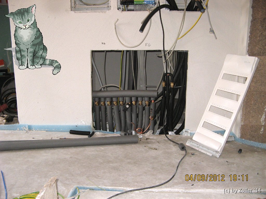 Verteiler im Ergeschoß für EG und KG mit Vorrichtung für die Kühlfunktion, bzw. Warmwasseraufbereitung. In diesem Fall wird der Fußboden "überbrückt".