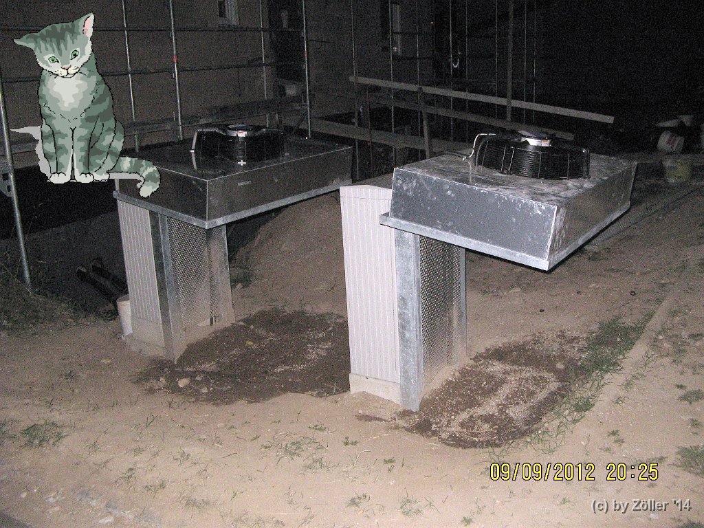 Die Wärmepumpen sind montiert. In diesen Teilen ist alles untergebracht. Es gibt kein extra Bufferspeicher. Das System ist komplett mit Propangas gefüllt.