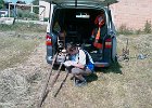 13 Bevor gebaut wird, brauchen wir ja auch noch eine Lagermöglichkeit für das ganze Werkzeug, Material, etc. Die Balken für das Grundgerüst sind aus einem Nachbarort. Insgesammt 3x5m wird das Gerätehaus (2m Überstand nach vorne).