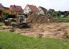 22 Dann endlich am 3. August 2011: Der Aushub!!!! Eigentlich sollte es schon im Mai beginnen, aber die Freigabe bzgl. der Finanzierung kam etwas zu spät. Dadurch hatte die Baufirma inzwischen einen anderen Bauauftrag gestartet. Der Aushub begann schon gegen 12 Uhr, bevor die Kamera soweit war. Der Humus ist fast komplett abgeräumt.