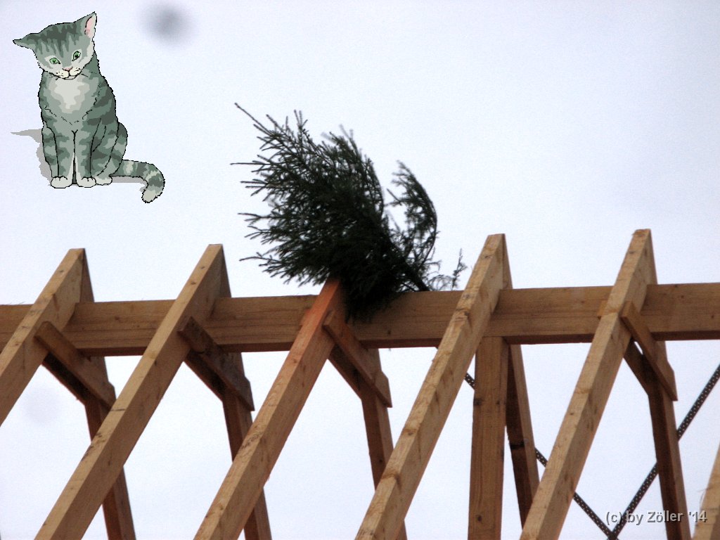 Das Richtbäumchen etwas mitgenommen.... bei dem Wind kein Wunder. Aber auf der Baustelle ist eigentlich noch alles da geblieben.
