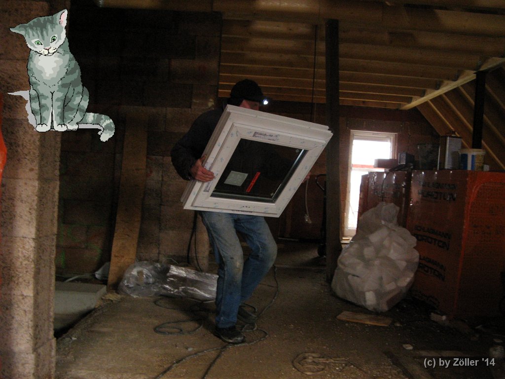 Opa trägt das Spitzbodenfenster (Jolanda fotografiert)