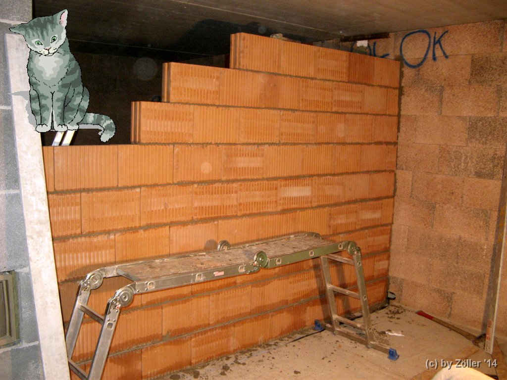 In zwei Durchgängen soweit aufgemauert, Werkstatt zu Spielraum