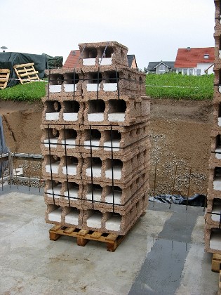 1 Zuerst sind die Holzspanschalungssteine geliefert worden |
