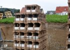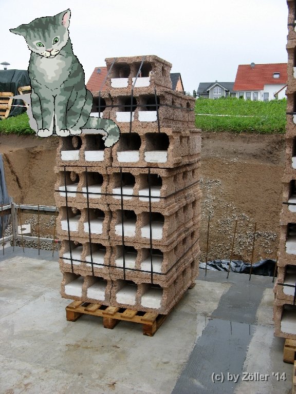 Zuerst sind die Holzspanschalungssteine geliefert worden