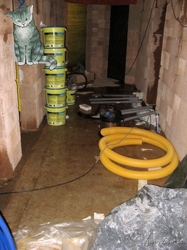 So am nächsten Abend, schon mehr Wasser im Keller. Aber trotzdem noch das meiste über das Treppenhaus in den Abfluss