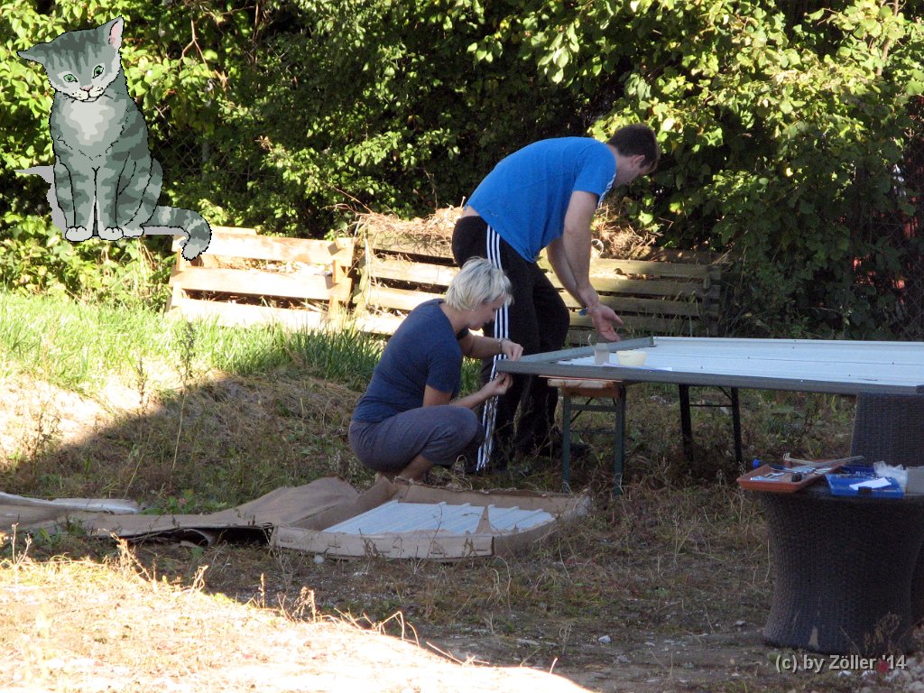 Nachbarn fleißig beim Geräteschuppenaufbauen